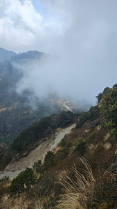 As we gained altitude, the trail steepened a bit. It wasn't too tough, but definitely a bit of a workout. We stopped now and then at scenic spots with views of the valleys and—on a clear day—Kanchenjunga in the distance.